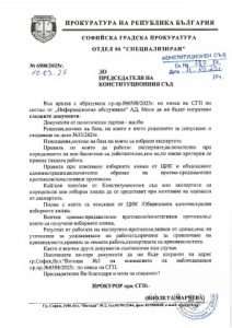 Софийската градска прокуратура е подала искане до Конституционния съд за предоставяне на документи, свързани с делото за законността на последните парламентарни избори. Искането е постъпило в 10:00 ч. днес и е подписано от прокурор Виолета Марчева.