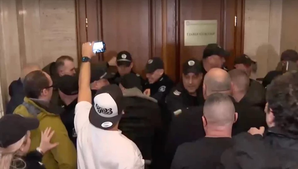 Протестиращите се опитаха да нахлуят в кабинета на Сарафов с думите „граждански арест“. Малко след това започнаха да дърпат един по един полицаите от кордона, който униформените образуваха около кабинета на и.ф. главен прокурор. Последва и „атака“ с яйца.