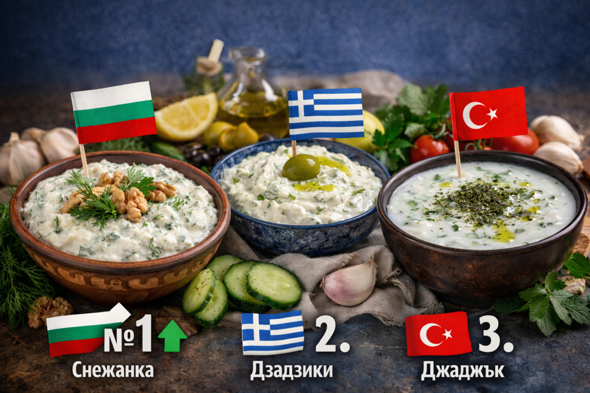 Гръцкото дзадзики е на второ място с рейтинг 4,2, а турският джаджък остава на 11-а позиция с оценка 4,0.