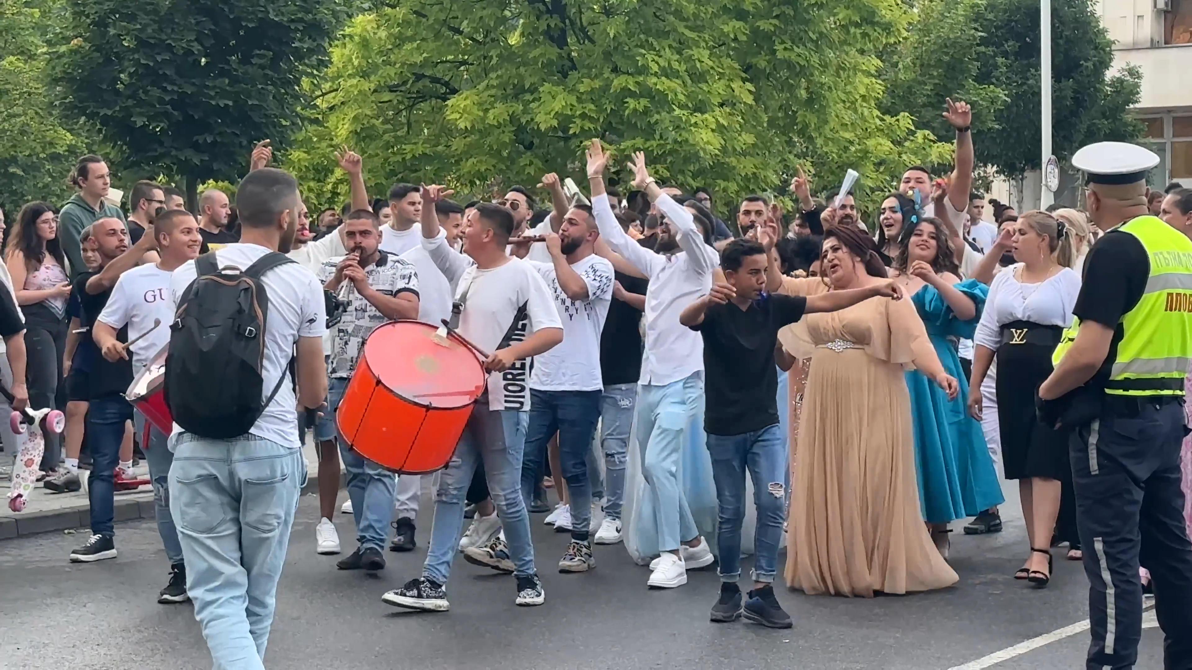 Под оглушителен съпровод на тъпани, абитуриенти от пловдивската Професионална гимназия „Ана Май“ кършеха тела, пристигайки на бала си. Те обиколиха паркинга пред хотел „Тримонциум“, някои играеха кючек и така стигнаха до входа, където брояха от 1 до 12.