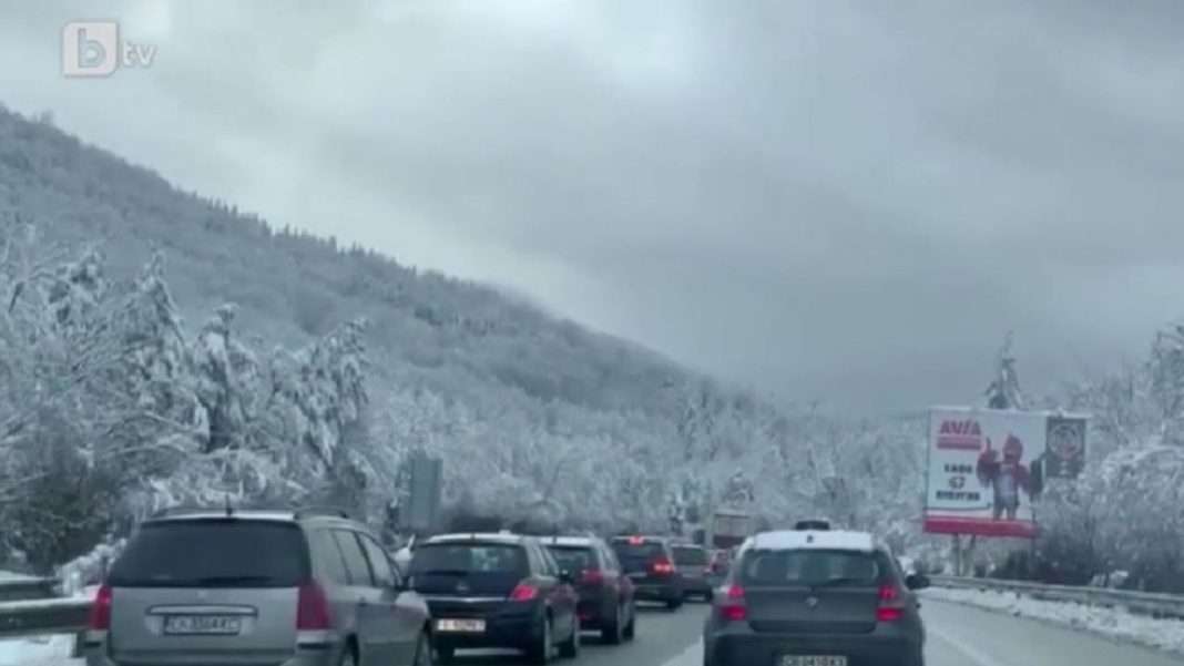 Сняг затрупа автомагистрала „Хемус“, което доведе до сериозни проблеми с трафика.