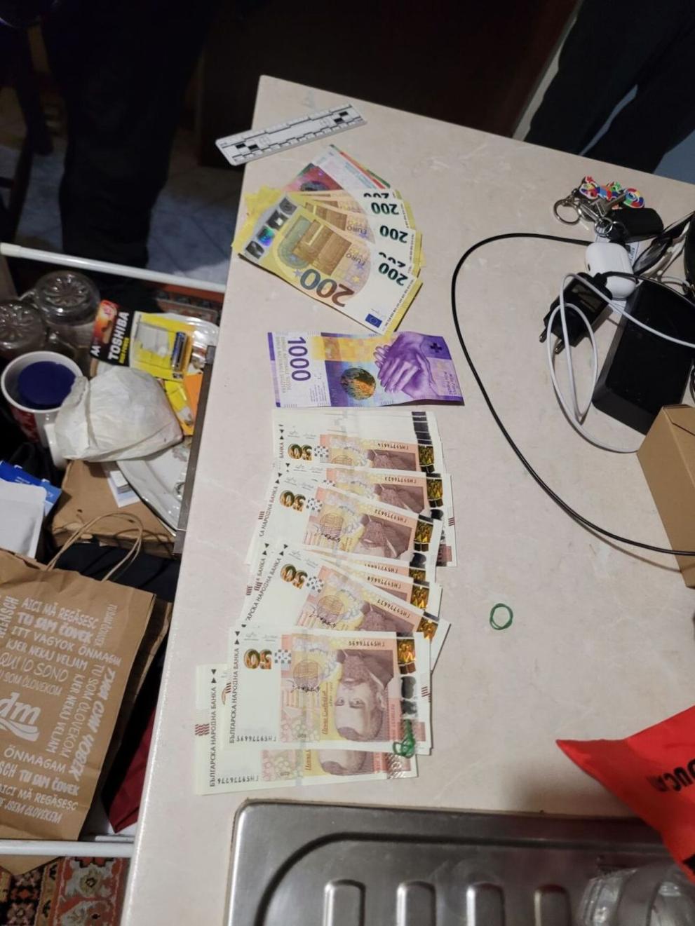 Последвали процесуално-следствени действия на двата адреса, намерени и иззети са около 150 грама амфетамин, 15 грама кокаин и 10 грама марихуана и сумата от 4200 лева, над 1300 швейцарски франка и 5300 евро и две електронни везни.
