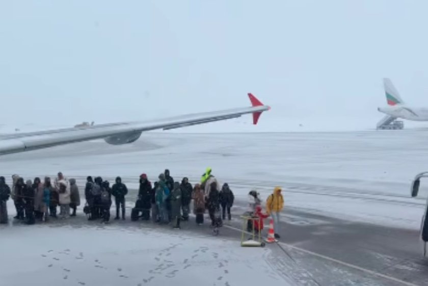 Стотици пътници блокирани над час на пистата на Летище София заради виелица (ВИДЕО)