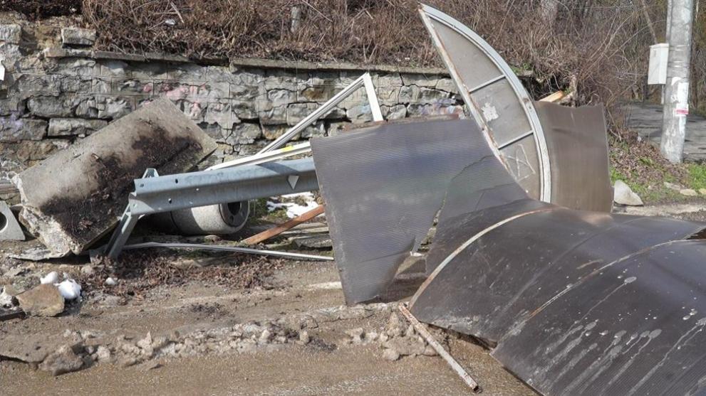 Скалните късове са разрушили подпорна стена и са паднали върху автобусна спирка в квартал „Асенов“. По това време на мястото не е имало хора, което е предотвратило по-сериозни последици.