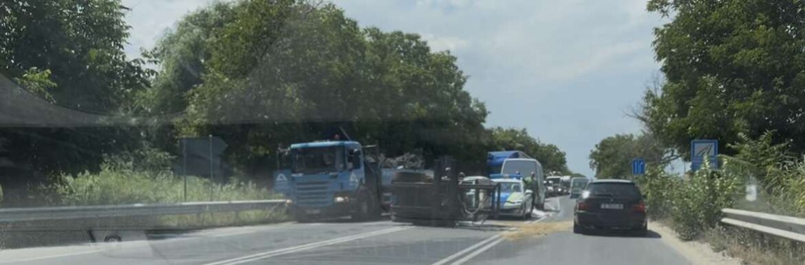 На място веднага е пристигнал полицейски екип. Към момента няма данни за пострадали, но на пътното платно се е разляло масло, което представлява потенциална опасност за пътнотранспортни произшествия. Екипи на пътната служба вече разпръскват пясък, за да обезопасят мястото.