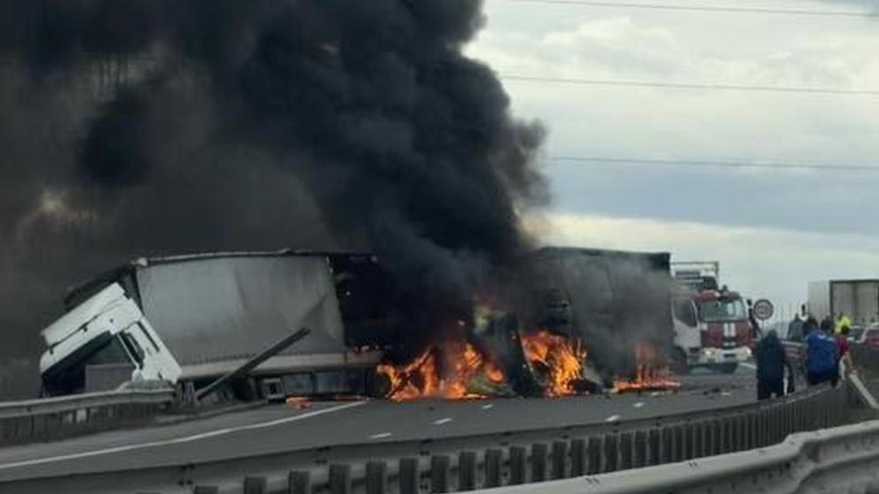 Тежка катастрофа между два тежкотоварни камиона блокира движението по Северната скоростна тангента в района на Илиянци. Инцидентът е станал днес около 15 ч., като по първоначална информация при удара е избухнал пожар.