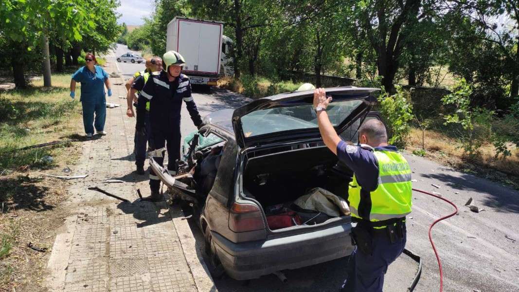 При катастрофата пострада шофьорът на автомобила, който е затиснат и се налага да бъде изваден с помощта на пожаникарите, повикани на място.