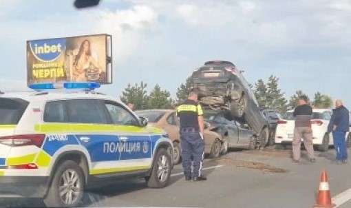 Верижна катастрофа е станала на 7-ия км на автомагистрала „Тракия“, съобщиха очевидци в социалните мрежи. Инцидентът е станал между няколко автомобила, като един от тях дори се е качил върху други два.