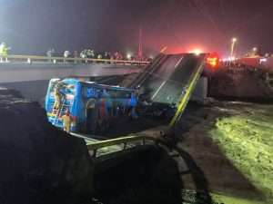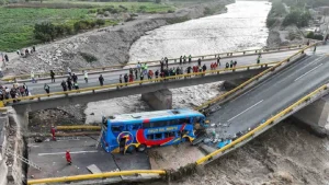Трагедията се разиграла малко след полунощ местно време на моста „Чанкай“ на 75 километра северно от Лима, на панамериканската магистрала, която свързва северната част на страната с перуанската столица. Жертвите са шофьорът на автобуса и един от пътниците. Ранените 41 души са приети в болница.