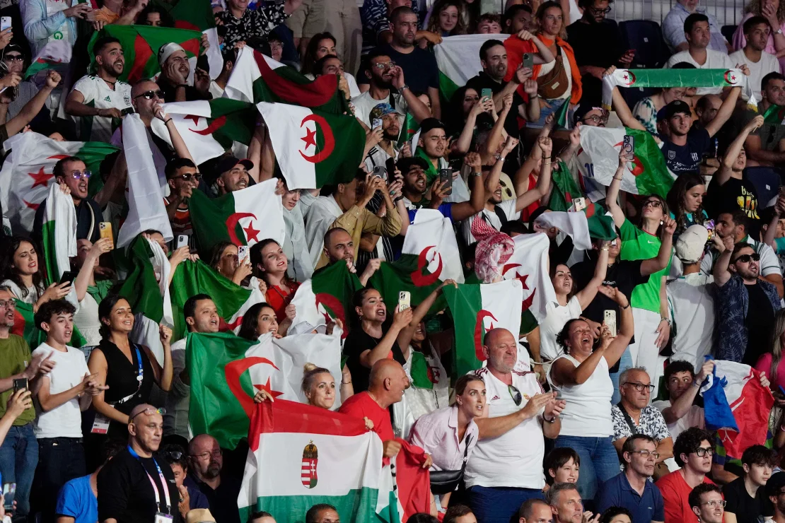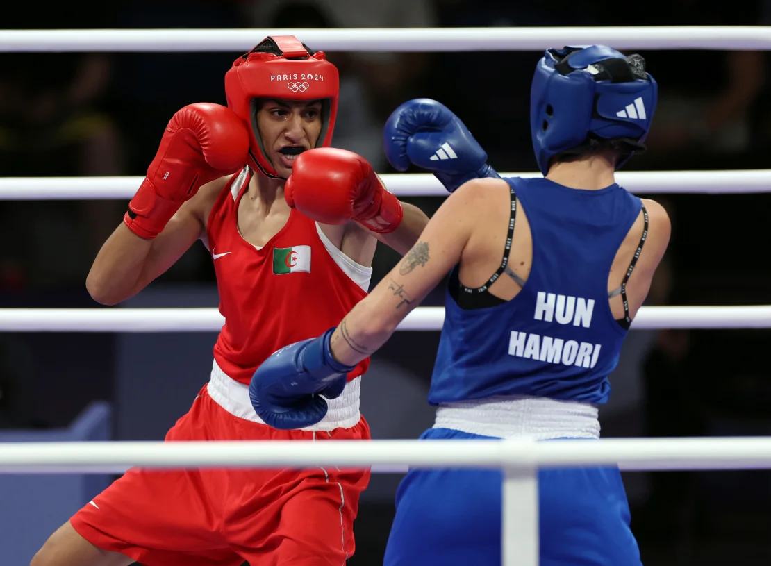 Вилпент, Франция (CNN) — Алжирската боксьорка Имани Хелиф спечели четвъртфиналния си мач в женската категория до 66 кг в събота, като постигна единодушно решение на съдиите срещу унгарката Анна Лука Хамори. С тази победа тя си гарантира олимпийски медал пред почти пълна зала, която я подкрепяше бурно.