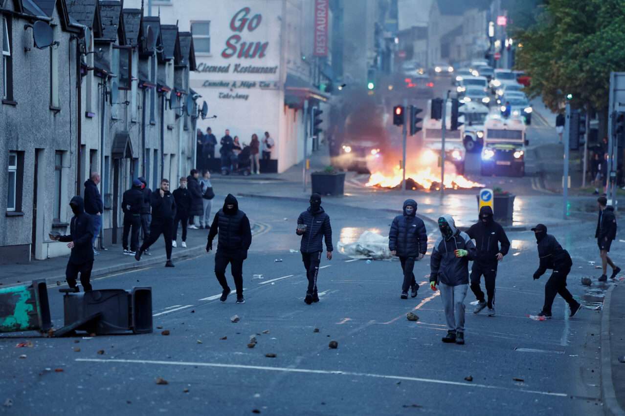 Сериозни безредици избухнаха за трета поредна нощ в Северна Ирландия, видеоклипове и снимки в социалните мрежи показват пожар в развлекателен център в град Ларн, след като маскирани младежи счупиха прозорците на сградата, предаде Ройтерс. Агенцията отбелязва, че не може да потвърди достоверността на тези кадри.