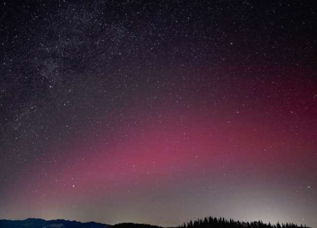 Това е полярно сияние, което в момента може да бъде наблюдавано при подходящи атмосферни условия от множество точки в страната.