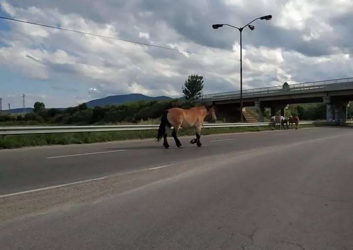 Точно там братята роми от квартал Изток си пускат конете. Редовно можете да видите коне, намиращи се под моста при КАТ, на влизане в Кюстендил. Даже подозирам, че някои от тях честичко отскачат в самия двор на сградата на КАТ да пасат – просто са ситуирани точно там, от двете страни на пътя и са там от десетки години.
