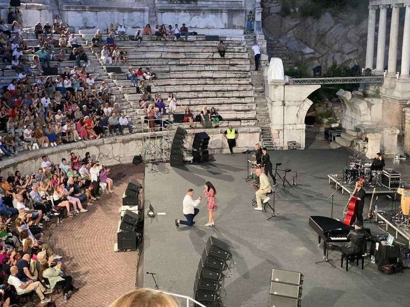 Античният театър в Пловдив се превърна в сцена на изключителна романтична изненада по време на концерта на италианския певец Марио Бионди. Музикалната вечер, наситена с неговия топъл и магнетичен глас, се оказа фон за едно незабравимо предложение за брак, което трогна всички присъстващи.