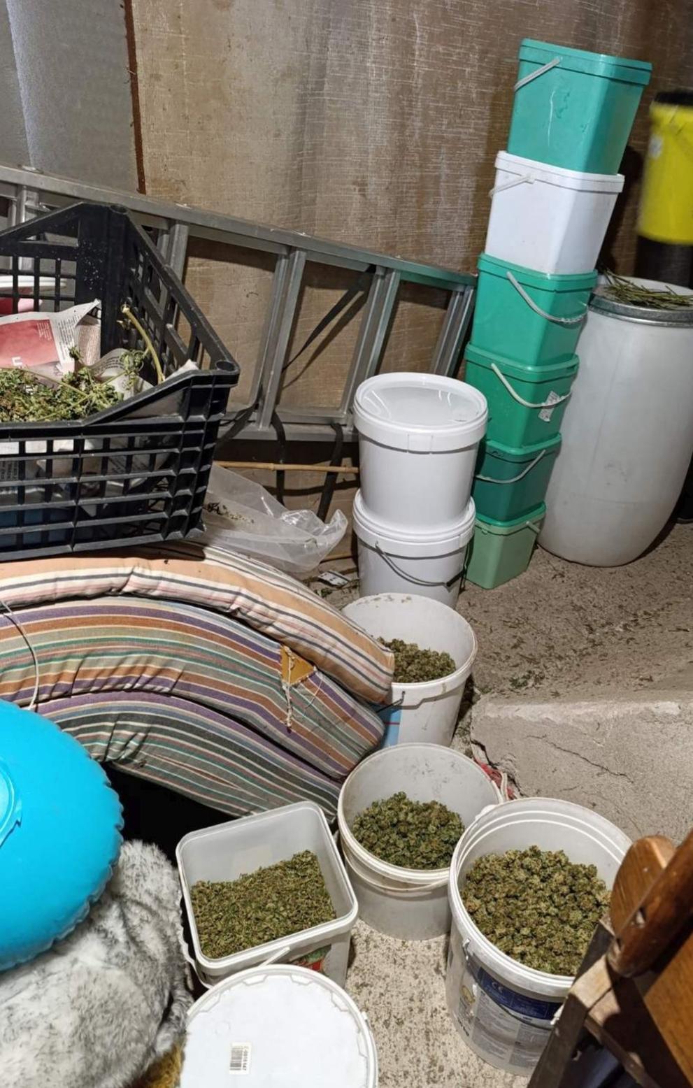 Намерена и иззета е марихуана, поставена в пластмасови кофи с капак, бидон и касетка, за която изготвената експертиза установява, че е марихуана с тегло 8 560 грама.