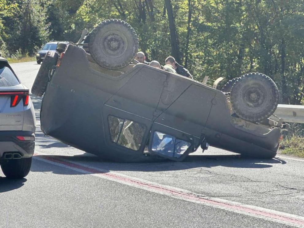 Военен джип се преобърна по таван в Прохода на Републиката.