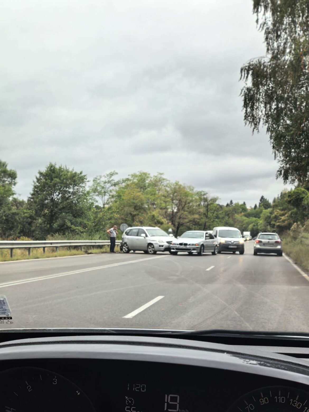 Заради пътнотранспортно произшествие движението по пътя между Владая и Драгичево в района на КПП Владая се извършва временно в една лента и в двете посоки.