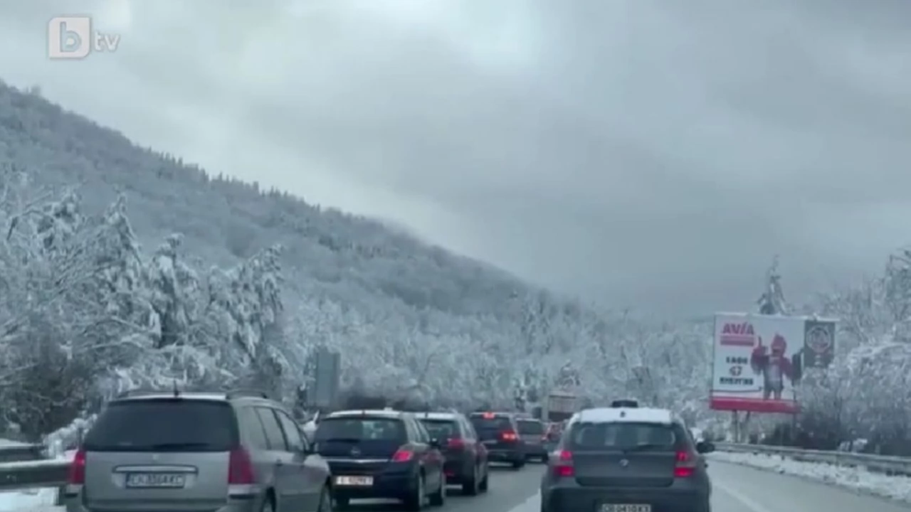 Задръстване на магистрала „Хемус“. Колоната от автомобили започва преди тунел „Ечемишка“ в посока София.