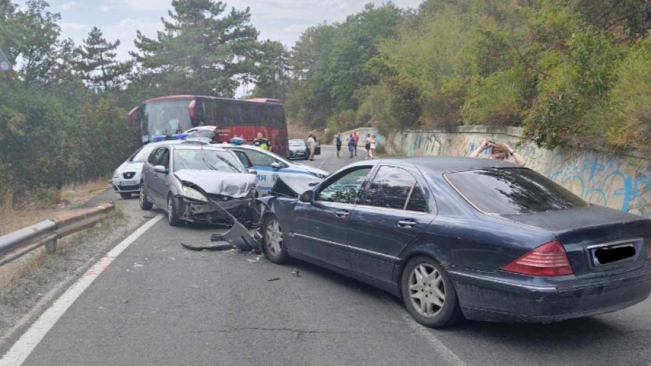 Трафикът се измества по алтернативен маршрут през „Дюлински“ проход до преместването на катастрофиралите автомобили и почистване на пътното платно.